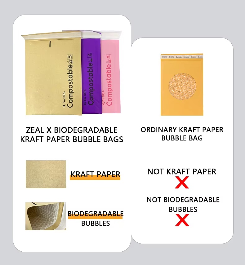 Als professionele fabrikant van papieren zakken biedt Zeal X volledig aanpasbare biologisch afbreekbare luchtkussenenveloppen van kraftpapier, inclusief aangepaste formaten, logo-afdrukken en papiergewichtopties. Deze composteerbare mailers zijn 100% biologisch afbreekbaar, niet giftig en vrij van vervuiling, waardoor ze ideaal zijn voor duurzame verpakkingsstrategieën. Met een sterke scheurweerstand, lichtgewicht ontwerp en betrouwbare bescherming voor expresbezorging worden onze kraftpapieren luchtkussenenveloppen vertrouwd door wereldwijde e-commerceverkopers die op zoek zijn naar milieuvriendelijke, plasticvrije verzendoplossingen.